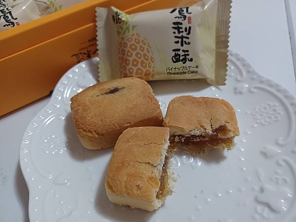 鳳梨酥內餡甜而不膩,吃起來有點像是比較爽口的麥芽糖,在嘴裡揪成一團,搭配這樣的外皮正好能將綿密的內餡在嘴裡突顯出來。